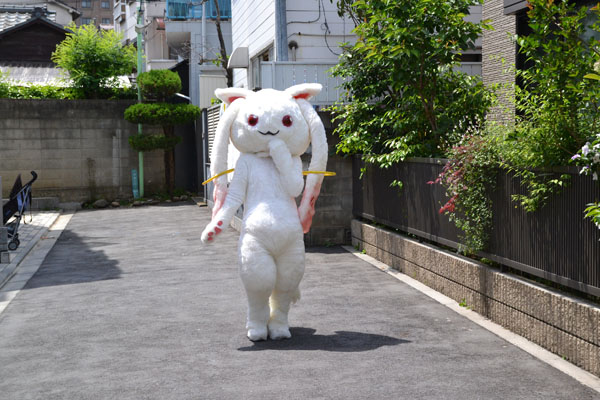 Heres the link to the blog.. But I'm just insterested in the pictures. ^_^A kyubey suit!! So Kawaii Its from the anime "Madoka Magica" or Purella Magica".